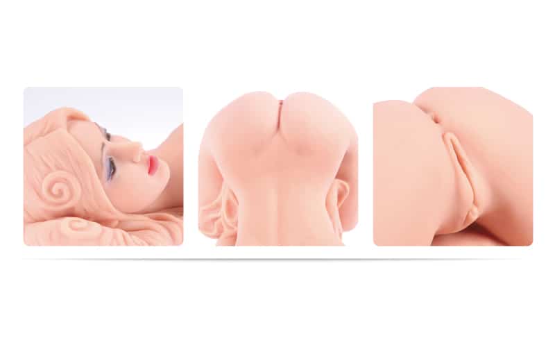 The appearance of the oral entrance is designed just like the real mouth, giving you even more realistic feeling on insertion.A realistic style LOVE DOLL; the design and texture is almost identical to a real lady. The realism of her beautiful face and body lines offer genuine ecstasy in the doggy style position. Vagina, Anal and Oral; Each hole offers a different feeling, enabling you to enjoy a variety of experiences.